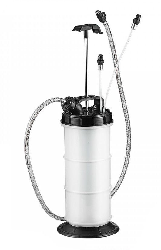 Kézi pumpával működtethető, vákuumos, 6 literes folyadék leszívó berendezés.